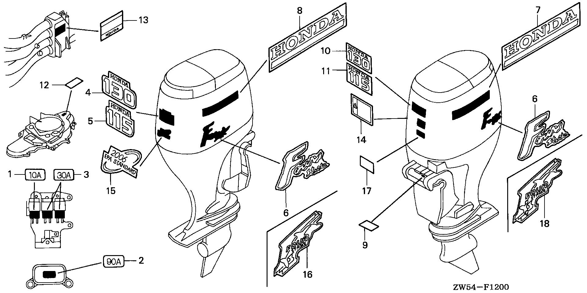 Mid - Large Outboard Engines (25 - 250hp) BF BF115 BF115AX XCA BZBG-1000001-1099999 LABELS - Posner Marine